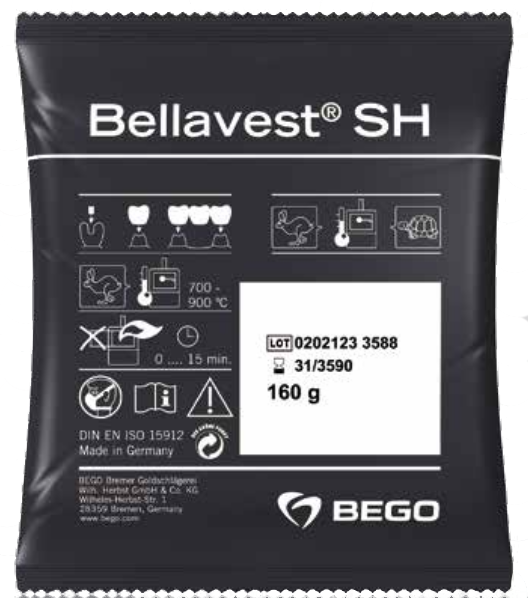- Bellavest® SH cobre todo o espectro de ligas dentais exceto titânio. Obtêm-se excelentes resultados de fundição em ligas não preciosas como por exemplo Wironia Light e Wiron 99; também pode ser utilizado com ligas preciosas.