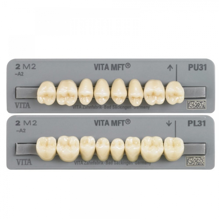 A morfologia das superfícies oclusais dos dentes VITA MFT baseia-se no princípio inovador easy-centric, onde as superfícies oclusais são configuradas de tal forma, que a posição cêntrica ideal relaciona-se quase de forma automática. O princípio easy-centric proporciona montagem de dentes profissional e racional com um acerto seguro da relação oclusal. Um ganho de produtividade com resultado excelente, da forma que o paciente merece.