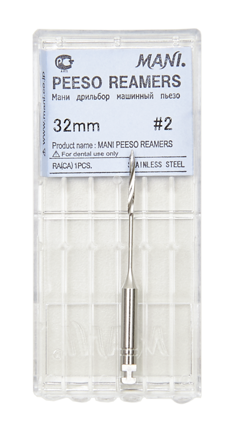 Projetado com cabos longos e afiadas que fornecem rápido alargamento da porção coronal do canal. Frequentemente usado para pós-preparação. Além do comprimento padrão de 32 mm, o comprimentos de 28 mm está disponível, dependendo do uso de molar ou canino, etc. Recomendado para uso com Postes MANI EG.