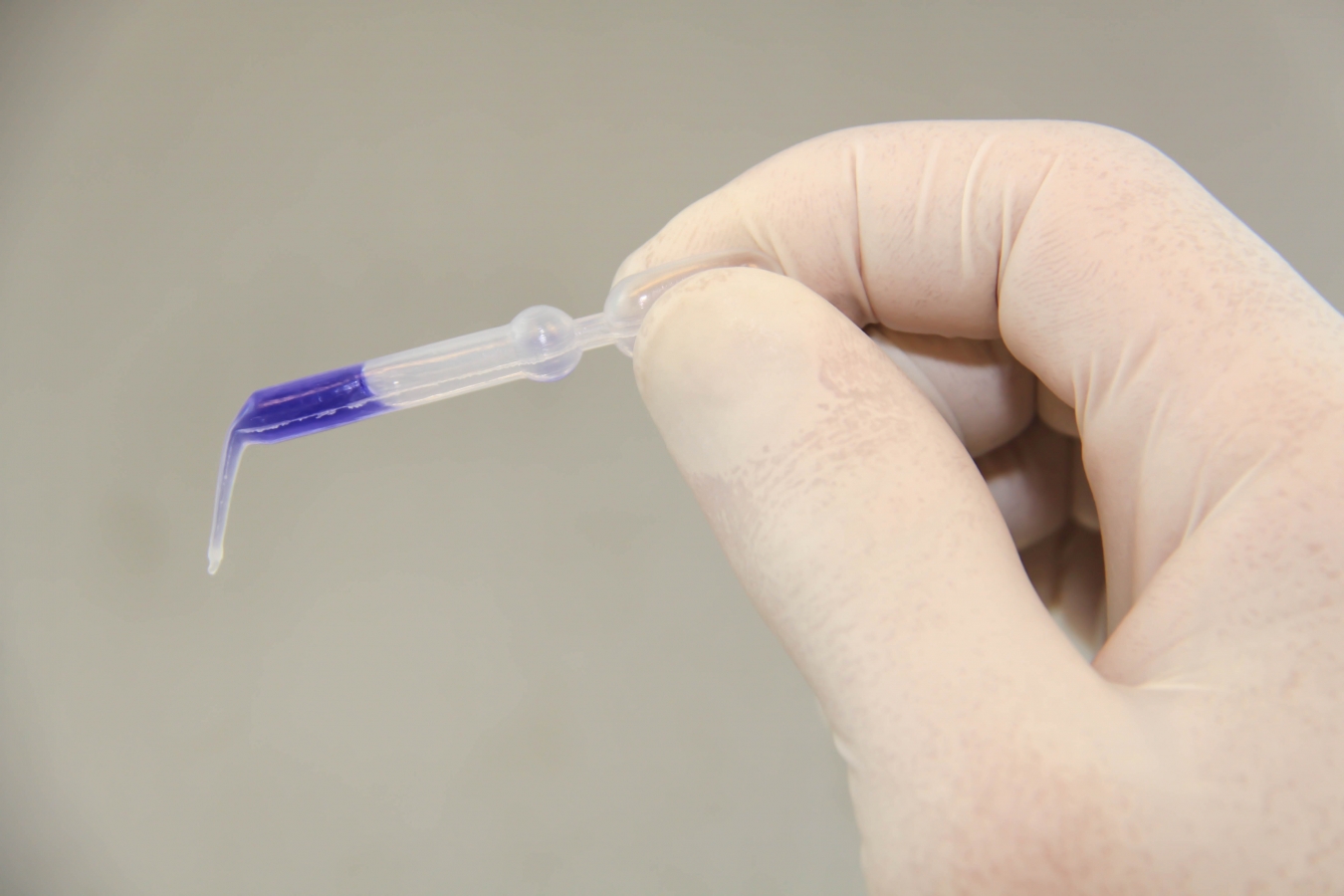 BaixarPeriAcryl® deve ser aplicado em pequenas gotas no local de tratamento. Ele é fixado com a introdução de íons de hidroxila como: água, solução salina ou saliva. Você pode aplicar água sobre ele usando uma seringa, entrar em contato com o adesivo usando um cotonete molhado ou uma gaze de algodão pequena. A saliva do paciente também pode ser coletada no vestíbulo usando sua mão com luva e aplicada no material. A introdução de umidade faz com que o material seja fixado em apenas segundos.