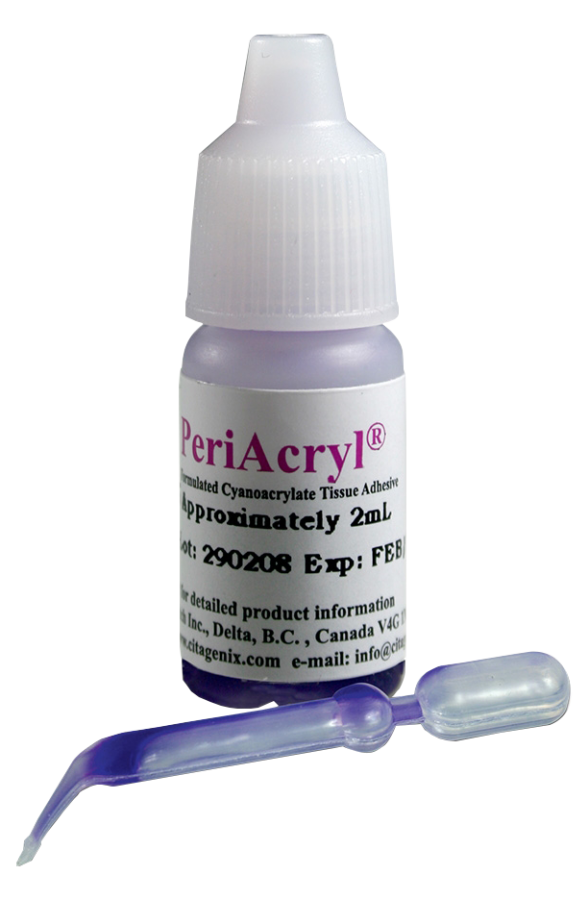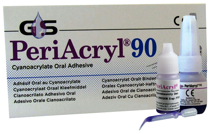 - Reforçar suturas. Qualquer situação em que as suturas tópicas são colocadas, o PeriAcryl® pode ser usado para proteger os nós de sutura e ajudar a obter o fechamento primário. Isto é especialmente útil depois de um implante ter sido colocado, os retalhos foram suturados e o PeriAcryl® foi aplicado sobre as suturas para preencher as lacunas que as suturas não conseguem puxar juntas para obter o fecho primário completo. Isolamento = sucesso;