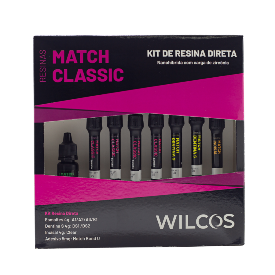 A família de materiais MATCH é formada pelas resinas MATCH 3D MASTER e MATCH CLASSIC seguindo