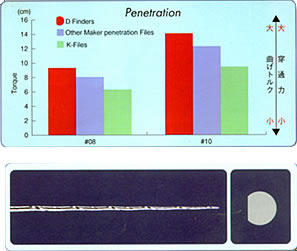 A secção de corte em forma de D não somente reforça as lâminas cortantes como também permite que a ponta da lâmina encontre a ponta o ápice com facilidade e eficiência, evitando cortes excessivos e penetração em canais curvos e calcificados. Sua conicidade, segundo a norma ISSO 2/100 permite uma suave e segura transição para a instrumentação posterior com limas convencionais. ![]()