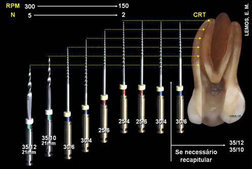 Disponível para venda imediata. O melhor custo e benefício do mercado, abrange todo o procedimento da instrumentação rotatória endodôntica do início ao fim do trabalho. Seqüência para Treinamento e Clínica Básica e Avançada Protocolo Prof. Érico Lemos. Para baixar a seqüência no formato PDF para impressão, clique aqui Utilizar motores elétricos entre 150 e 300 RPM e Torque de 2 a 5 N, Instrumentos calibrosos requerem maior velocidade (RPM) e Torque (N). Recomenda-se, antes do uso em pacientes, treinamento em canais simulados e dentes extraídos