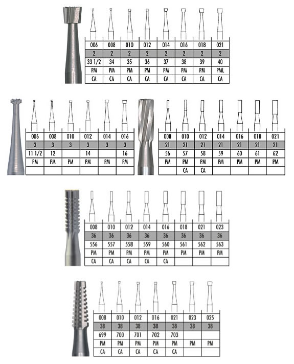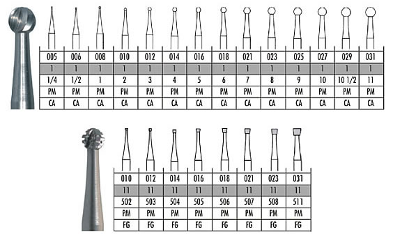 Brocas em Aço Comum para Preparação de Cavidades (Dentina)