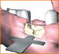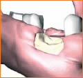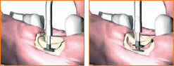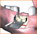 Uma pré-colocação de implantes no osso neo-formado permite a osteo-integração rápida e estável dos mesmos. |
