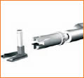 Enroscar o suporte de plástico à ferramenta de impacto e, em seguida, colocar o distrator ao suporte para poder introduzir-lo por impactos na incisão óssea já preparada. |