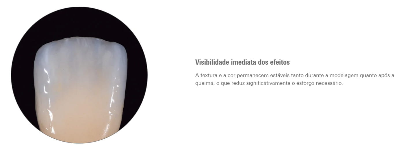 Efeitos naturais, como translucidez incisal, efeitos de halo, mamelões, fissuras e muito mais, podem ser reproduzidos de forma rápida e fácil com as massas fluorescentes EFFECT PASTE.