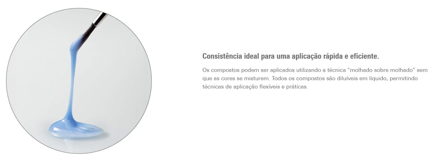 A forma, a cor e os efeitos ficam visíveis logo na aplicação e se mantêm após a queima, trazendo mais previsibilidade e confiança no resultado.