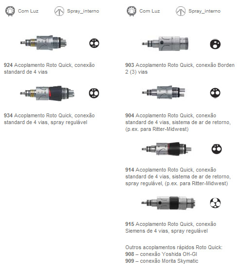 Acoplamentos rápidos com válvula antiretorno, para Roto Lux, canetas, scaler e micromotores a ar com luz